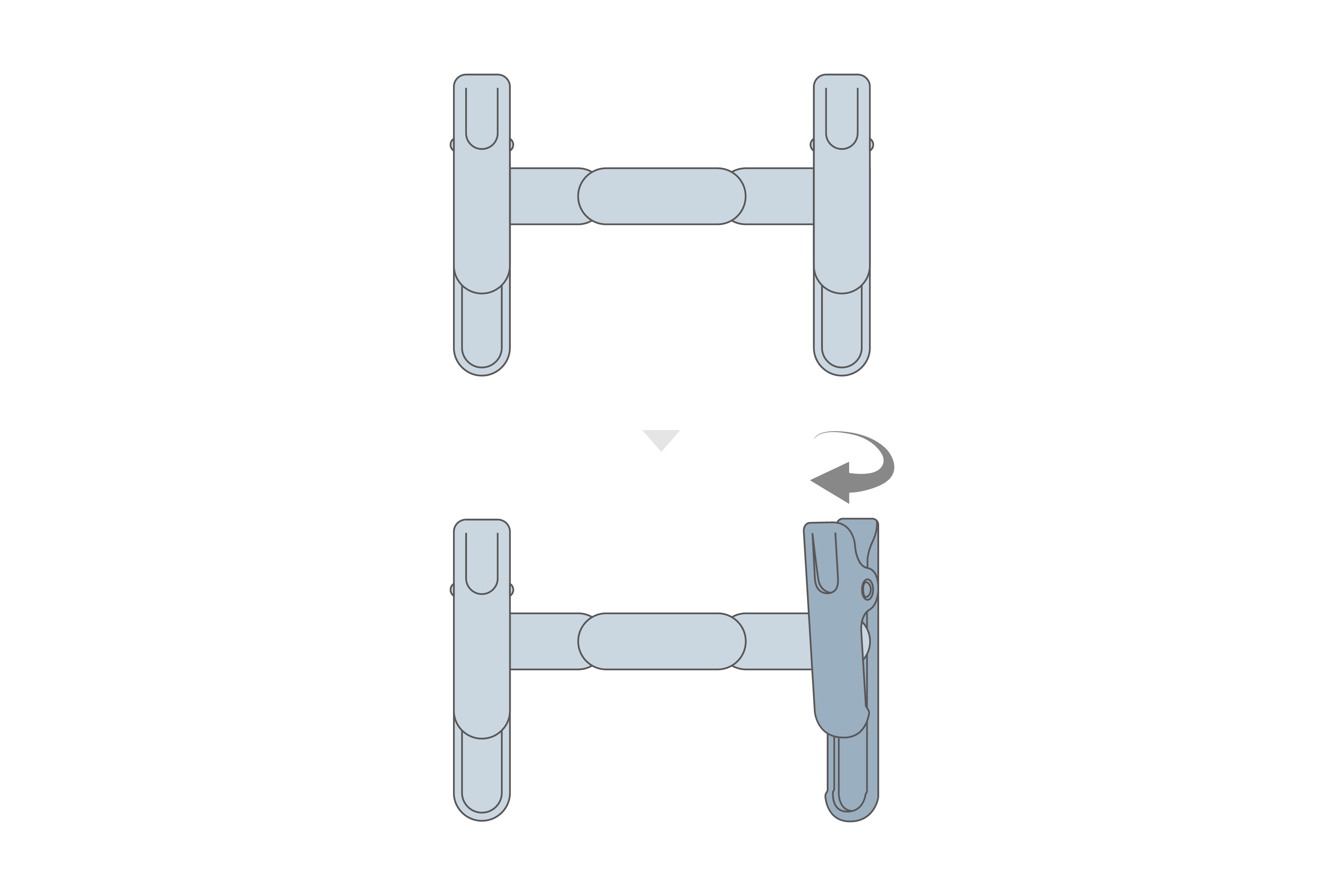 - クリップ型の状態でクリップパーツを内側や外側にひねる動きはお控えください