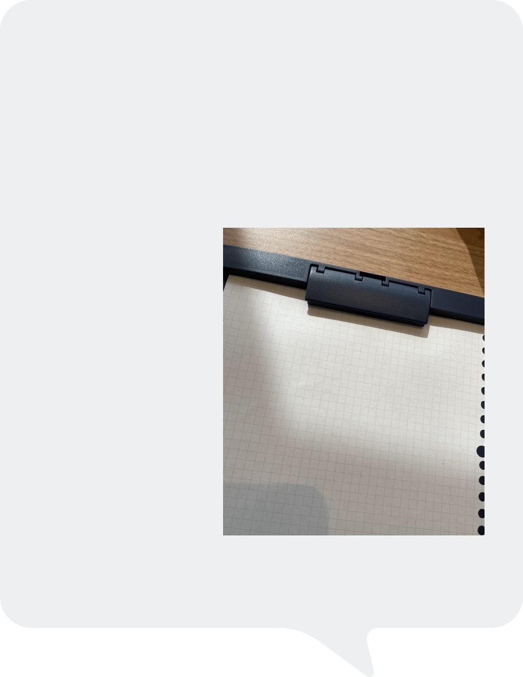 クリップが小型で、とじた書類を隠す面積が小さく、筆記面を広く取れます。