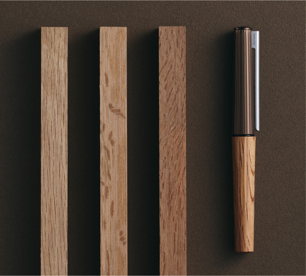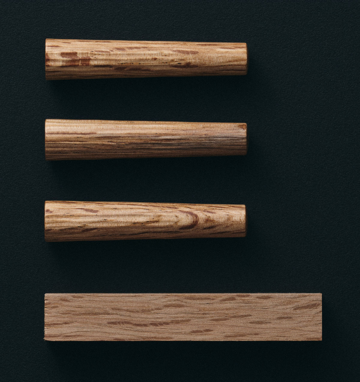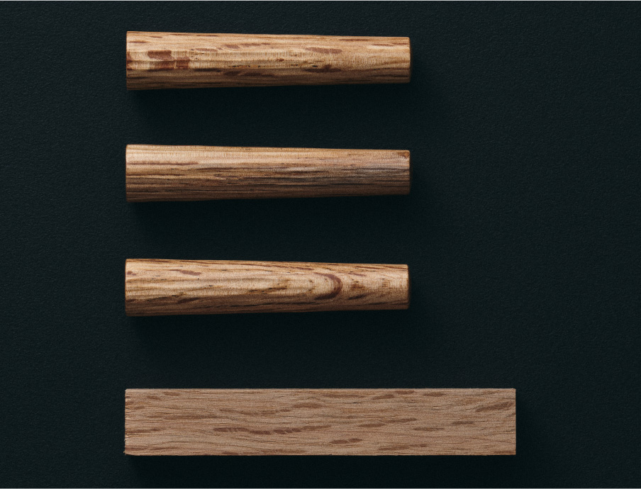 私たちは、イチイガシの特徴である「虎班(とらふ)」などの豊かな表情を自然の中で生き抜いてきた力強さの証と捉え、大切にしながら1つ1つ加工しました。