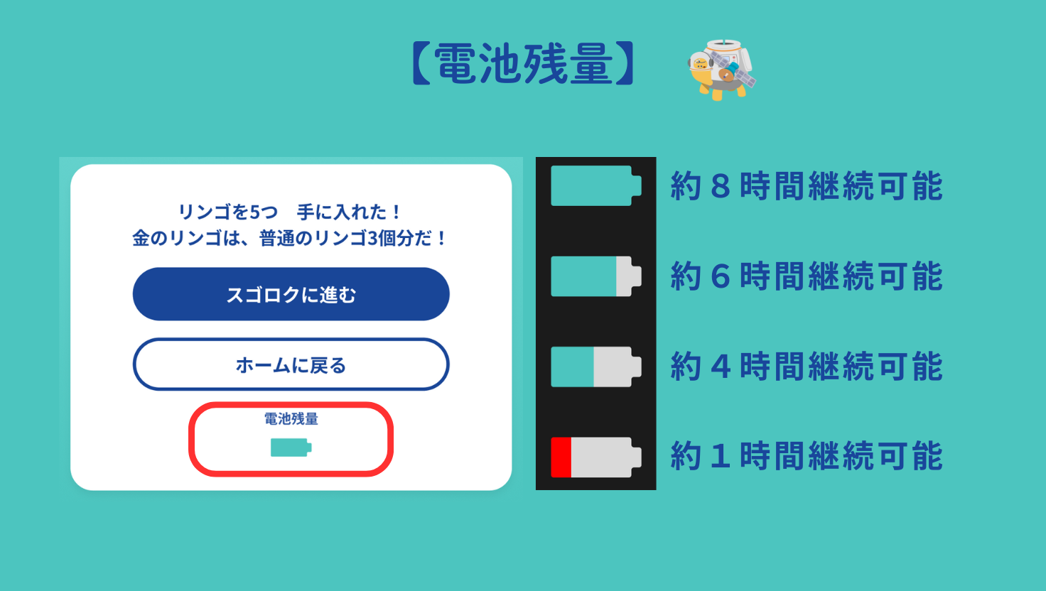 ※電池の状況によって継続時間は前後します