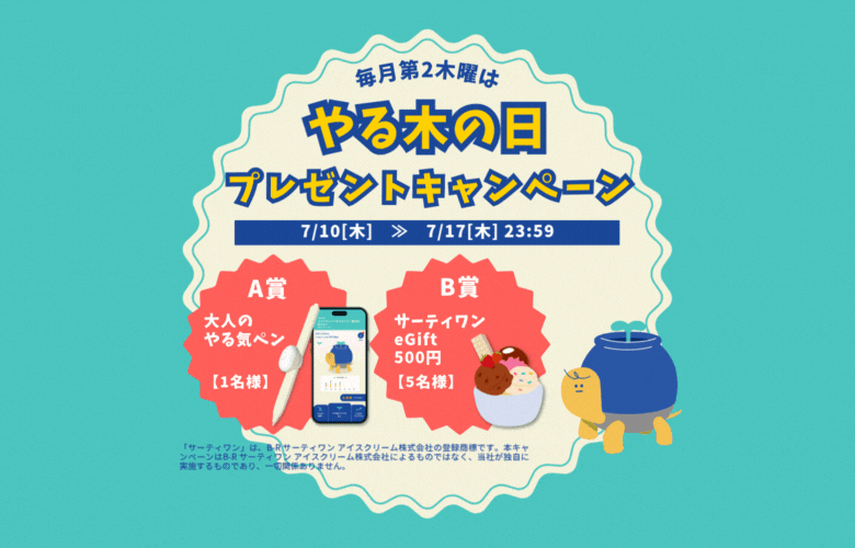今月プレゼントする「やる木アイテム」は 大人のやる気ペン と アイスクリームギフト券!