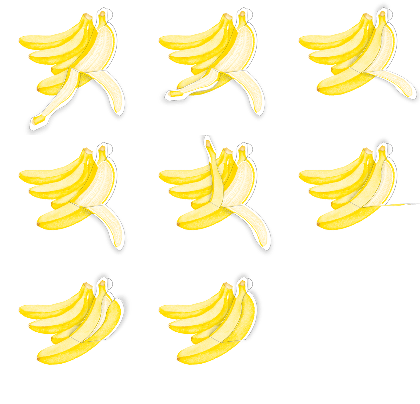 食べものや動物などの日常的なモチーフをリアルに描いています。