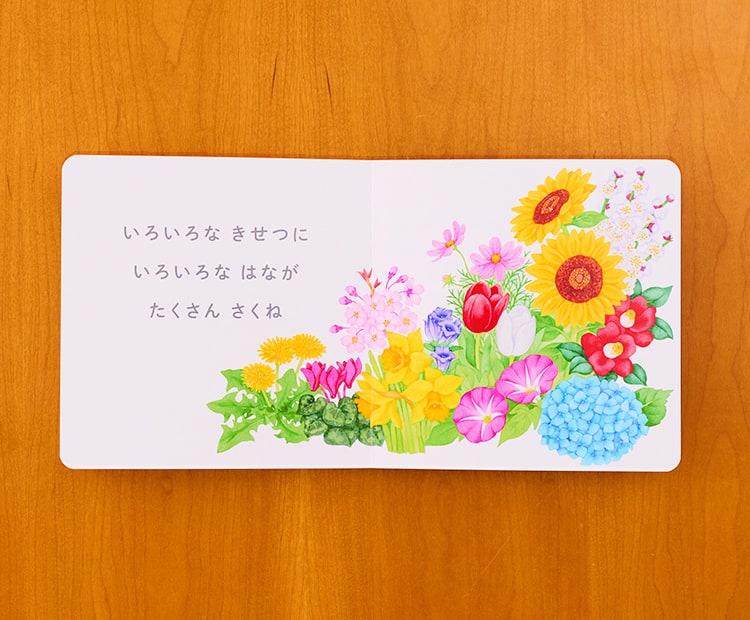 美しいイラストとしかけで、幼少期のお子さまが季節の花を楽しく知ることができ、好奇心を育みます。