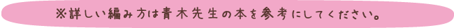 - <作り目> きなりの糸で「くさり編み」を30目編む。