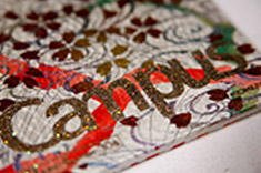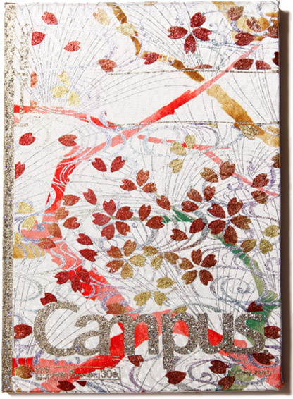 父は、着物に金箔を貼る「金彩」という伝統工芸の職人をしています。その父に協力してもらい、金箔で「campusノート」を再現しました。京友禅を纏った、瑞々しくも艶やかな装いの「京美人campusノート」です。