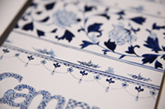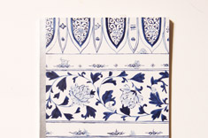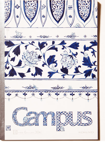 立体物の陶器に染付けするのではなく、キャンパスノートの表紙に。陶器の肌の色のような表紙にも合う、藍の唐草を着色しました。学生の頃にもどったような気分で制作しました。