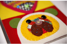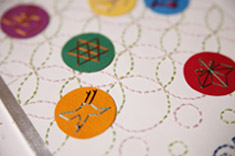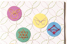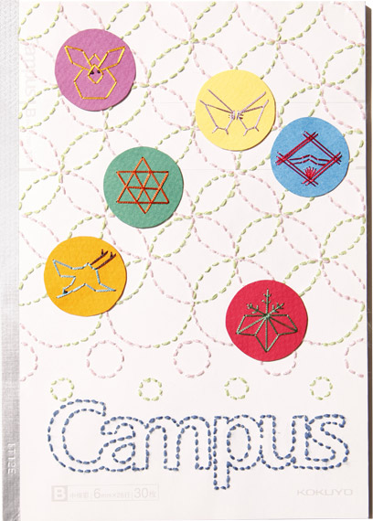 普段使っている仕事道具の、糸と針を使ってキャンパスノートをデコってみました。カラフルな丸の中には、子供の成長を祈るお守り「背守り」を施しして、育児日記として、大人になっても使いたいノートになりました。