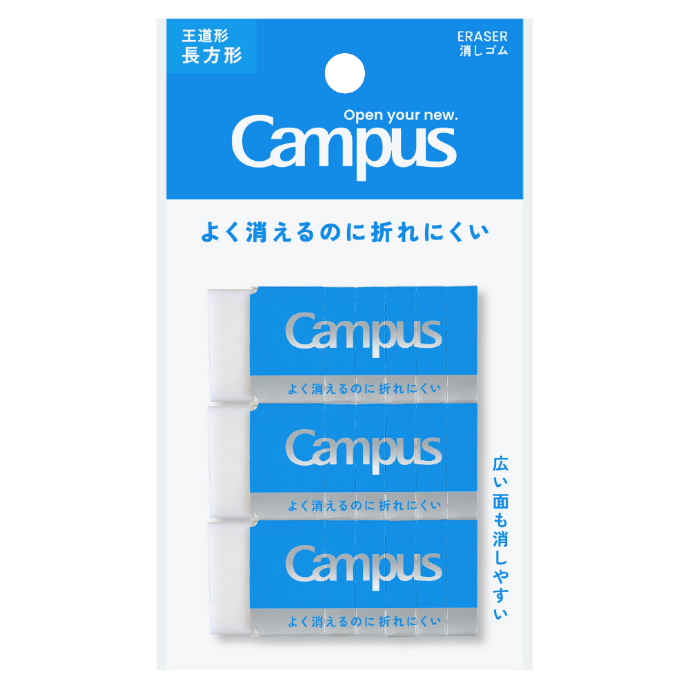 ESR-C12-3P キャンパス よく消えるのに折れにくい消しゴム 長方形・M・3P 420円