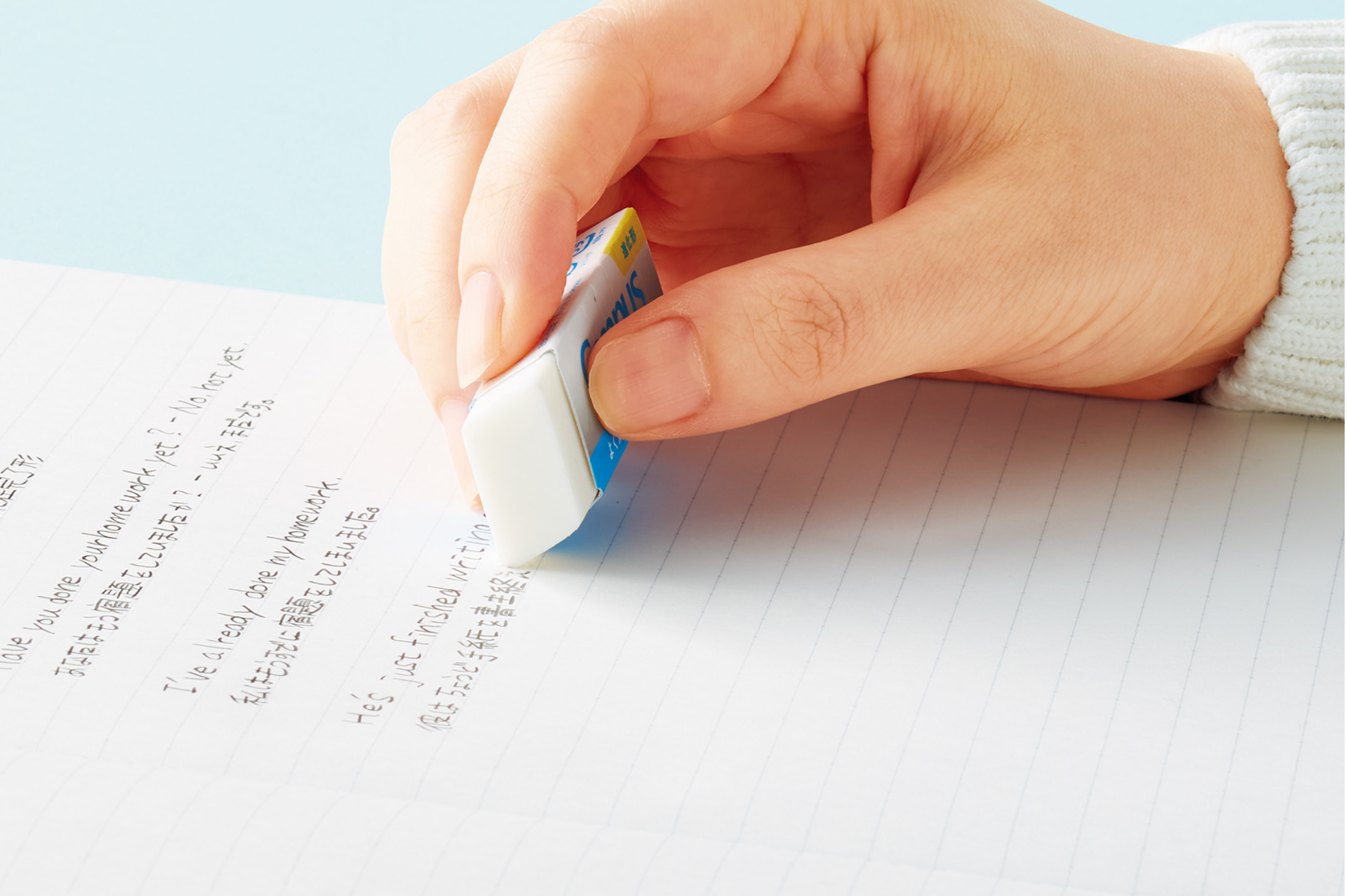 • 軽い力できれいに消せるから、集中力を切らさずにサッと消すことができます。