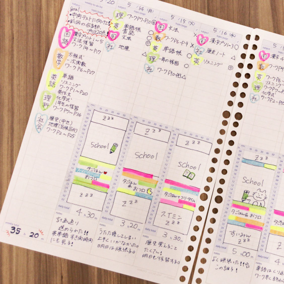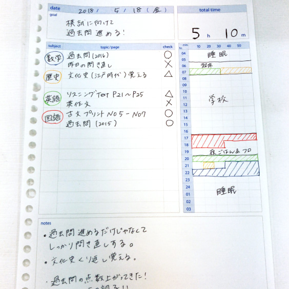 テスト2週間前から科目別に計画できる「2ウィークス罫」