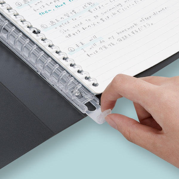 ●穴数/26穴 ●表紙/R-PP ●最大収容枚数/65枚 ●とじ具のタイプ/スリムタイプ(スライド式)