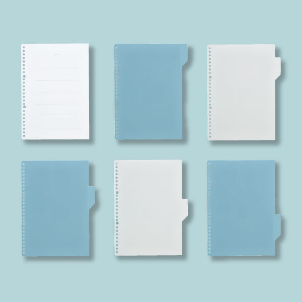 ●セット内容/扉紙・中紙10枚・PP製カラー見出しシート5枚(ル-P737D:ブルー3枚・淡グレー2枚、