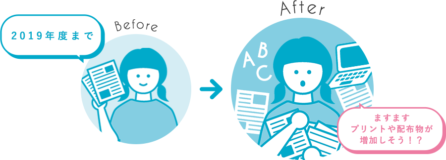 保護者向けのお便りと、お子さま向けの宿題プリントなどを