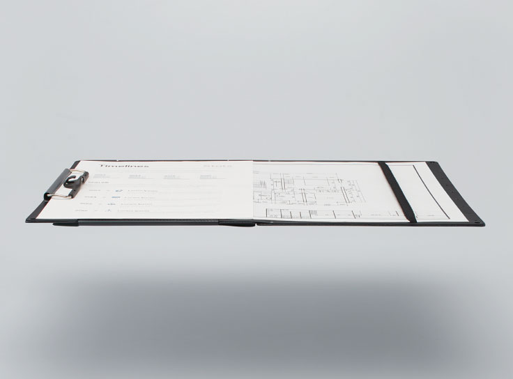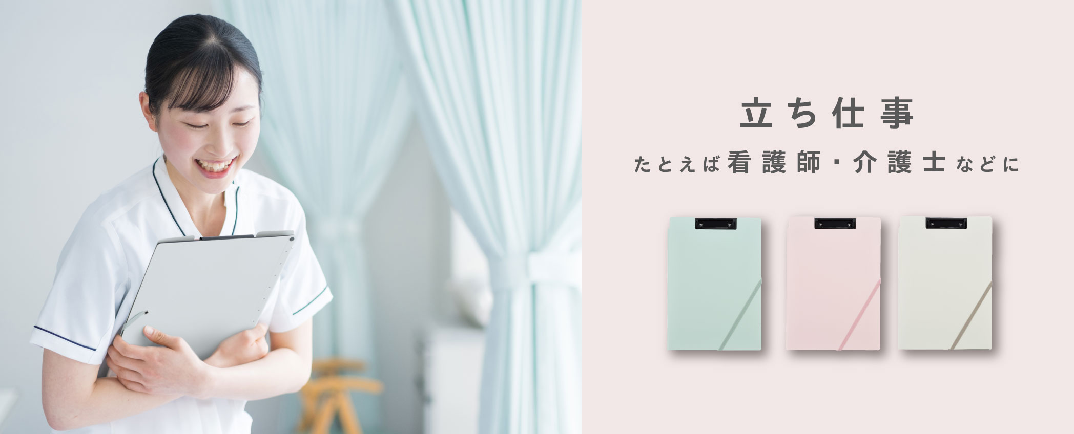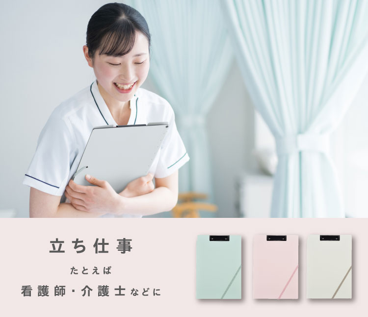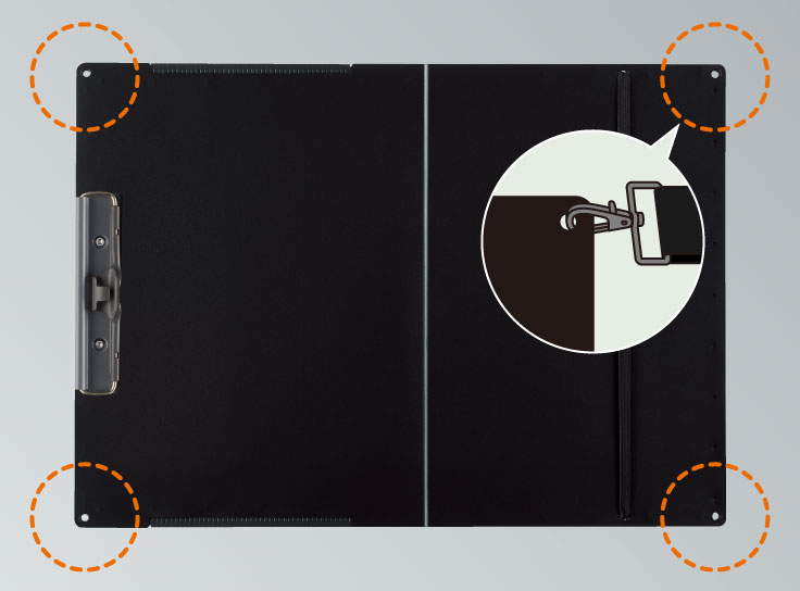 筆記面は厚めのボード(2.0mm)で補強、立ち作業でもたわみにくく、しっかりと書き込めます。