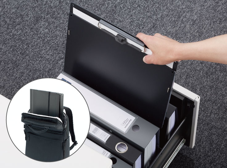 折りたたんだ状態で、デスクの引き出し(横幅318mm以上)に入るコンパクトサイズです。持ち運びにも便利!