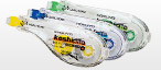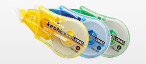 キレイに引けるヨコ引きタイプの修正テープ。2段可動のデュアルヘッドで、先端ピッタリ!付きがイイ!
