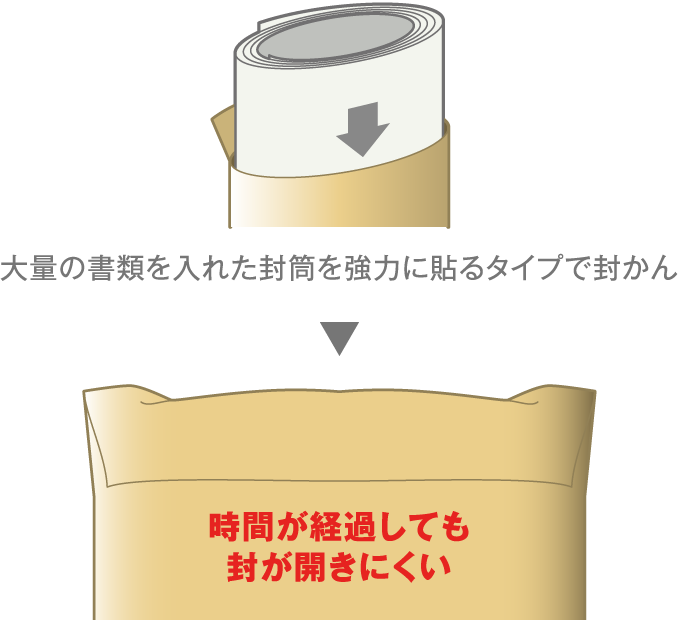 貼った直後から強力に貼り付くので、時間が経過しても封が開きにくく安心です。