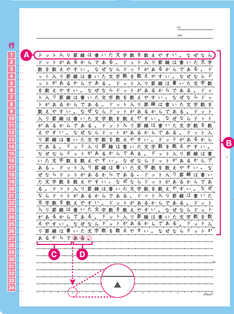 罫線上に等間隔に入ったドットが「美しく書く」をサポートする ドット入り罫線シリーズ。