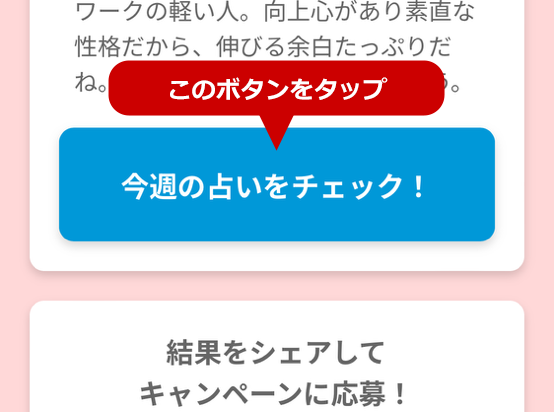 診断が終わったら「今週占いをチェック」ボタンを押す