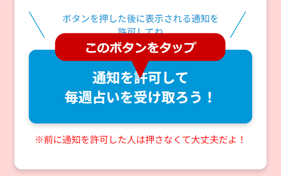 「許可する」ボタンを押せば、翌週以降の占いを受け取る設定が完了