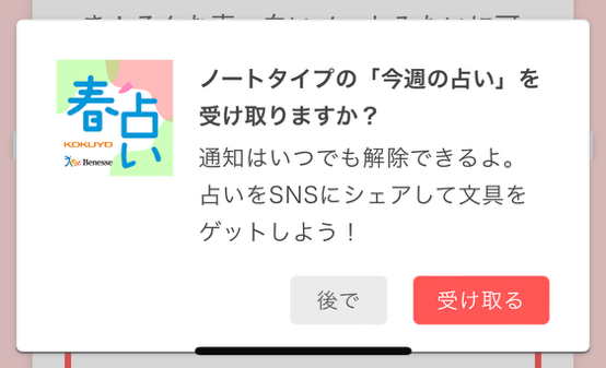 「受け取る」ボタンを押せば、翌週以降の占いを受け取る設定は完了!
