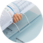 ①お手元に、書類がとじられているパイプ式ファイルと空の保存用ファイルをご用意ください。