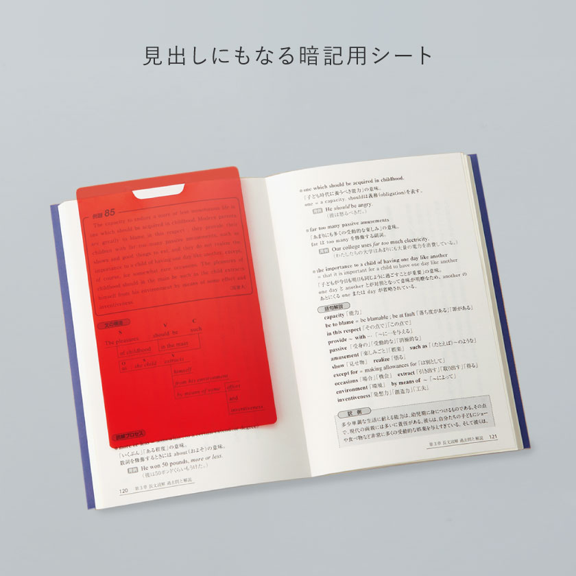 [暗記用シート(赤)]●外寸法/タテ162×ヨコ100 ●材質/PVC ●製品色/赤 ●落下防止切り込み付き