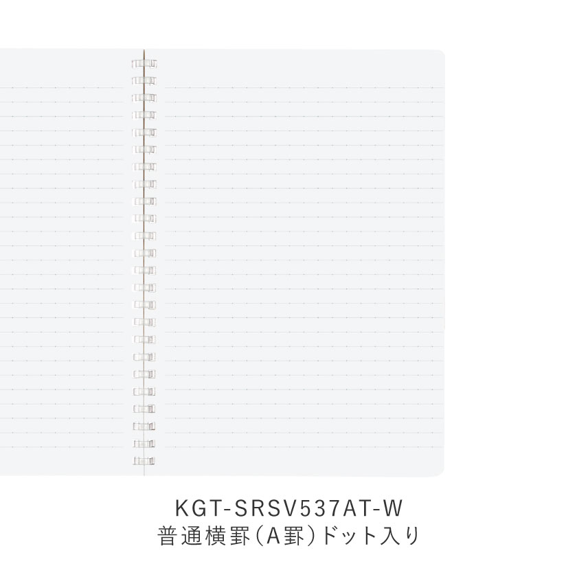 ●サイズ/A5 ●中紙寸法/タテ210×ヨコ148mm ●罫内容/KGT-SRSV537AT-W:普通横罫(A罫)ドット入り、
