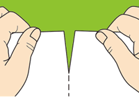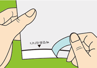 はくり紙の端を線に沿ってはがし、貼りたい場所に位置合わせをして仮り止めをします。