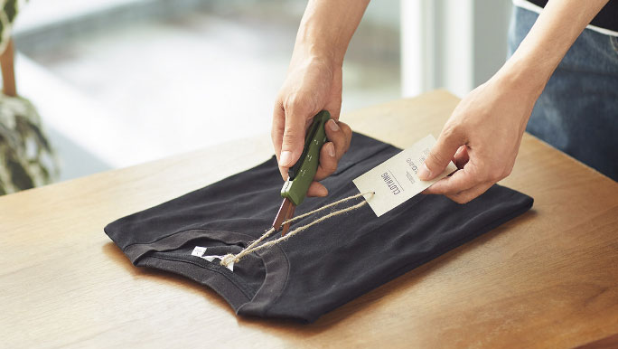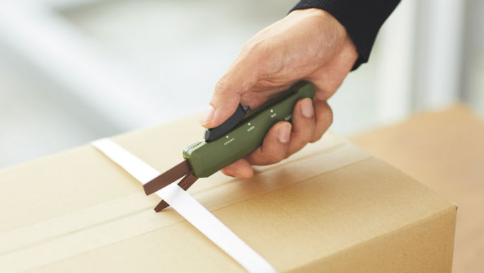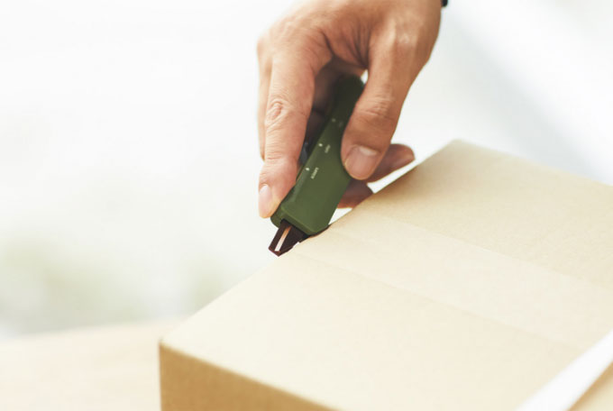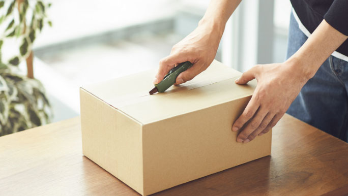 握ったまま切りたいところに刃先を当てて、スーッと引くだけで簡単に開梱