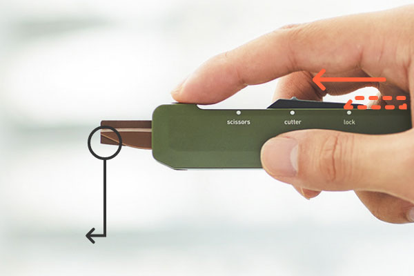 〔cutter〕までスライドさせると刃が出てカッターモードに
