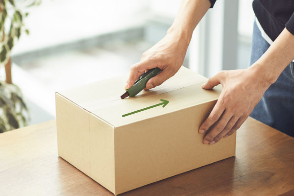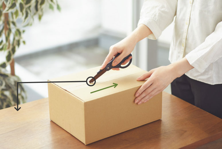 切りたいところに刃先を当てて、スーッと引くだけで簡単に開梱