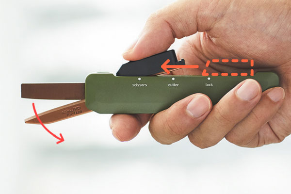 〔scissors〕までスライドさせると刃が開いてハサミモードに
