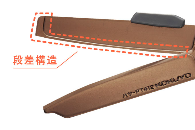 ハサミの刃の内側の接する部分を最小限に抑えた「3Dグルーレス構造」で、テープを切ってもベタつきにくくなっています