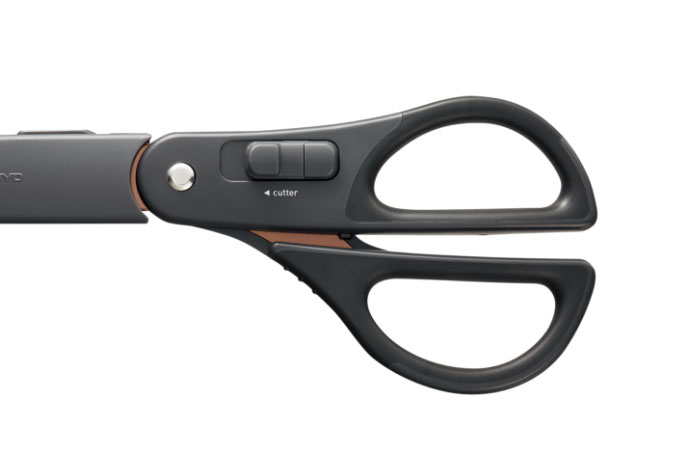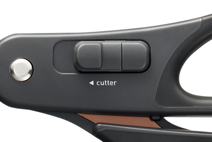 カッターモード時の刃の出る幅は1mm。左右非対称ハンドル。「cutter」の表記はありません。