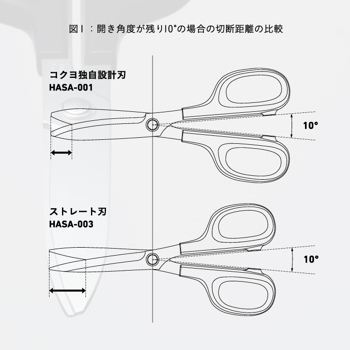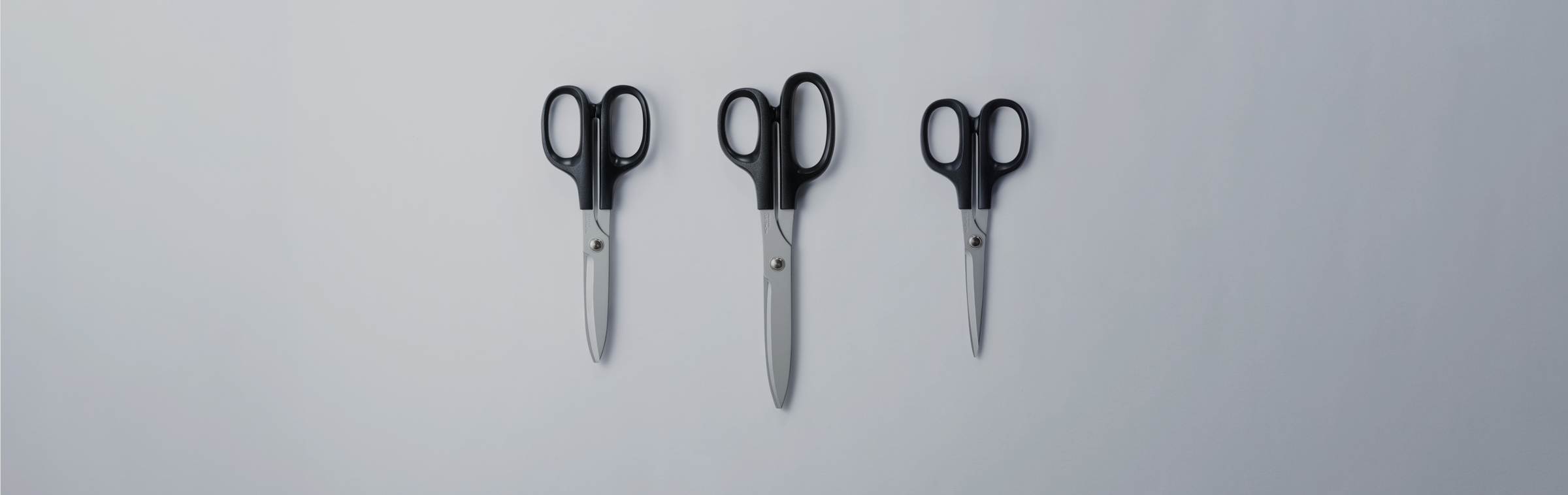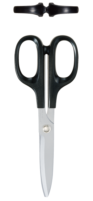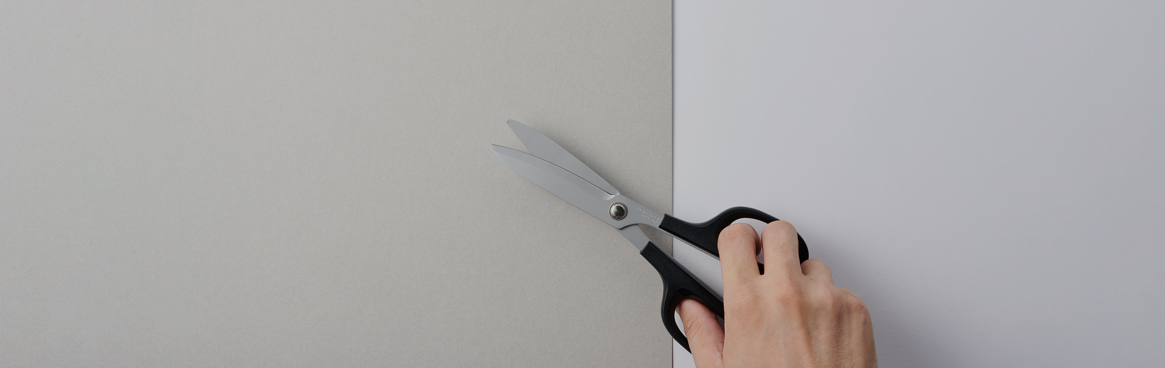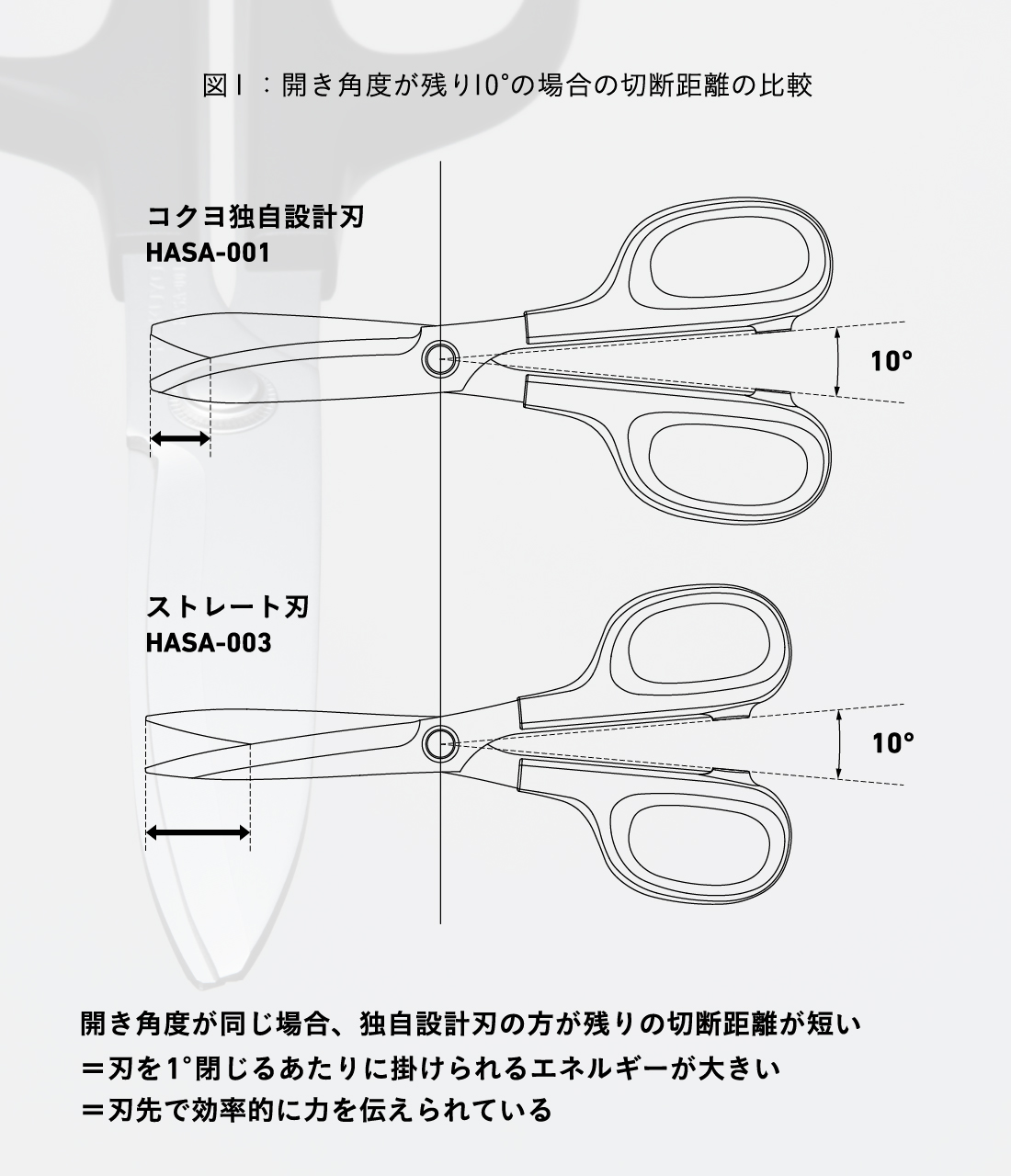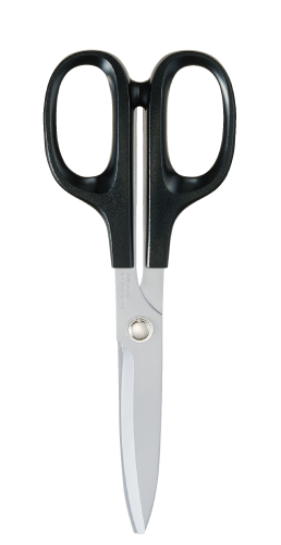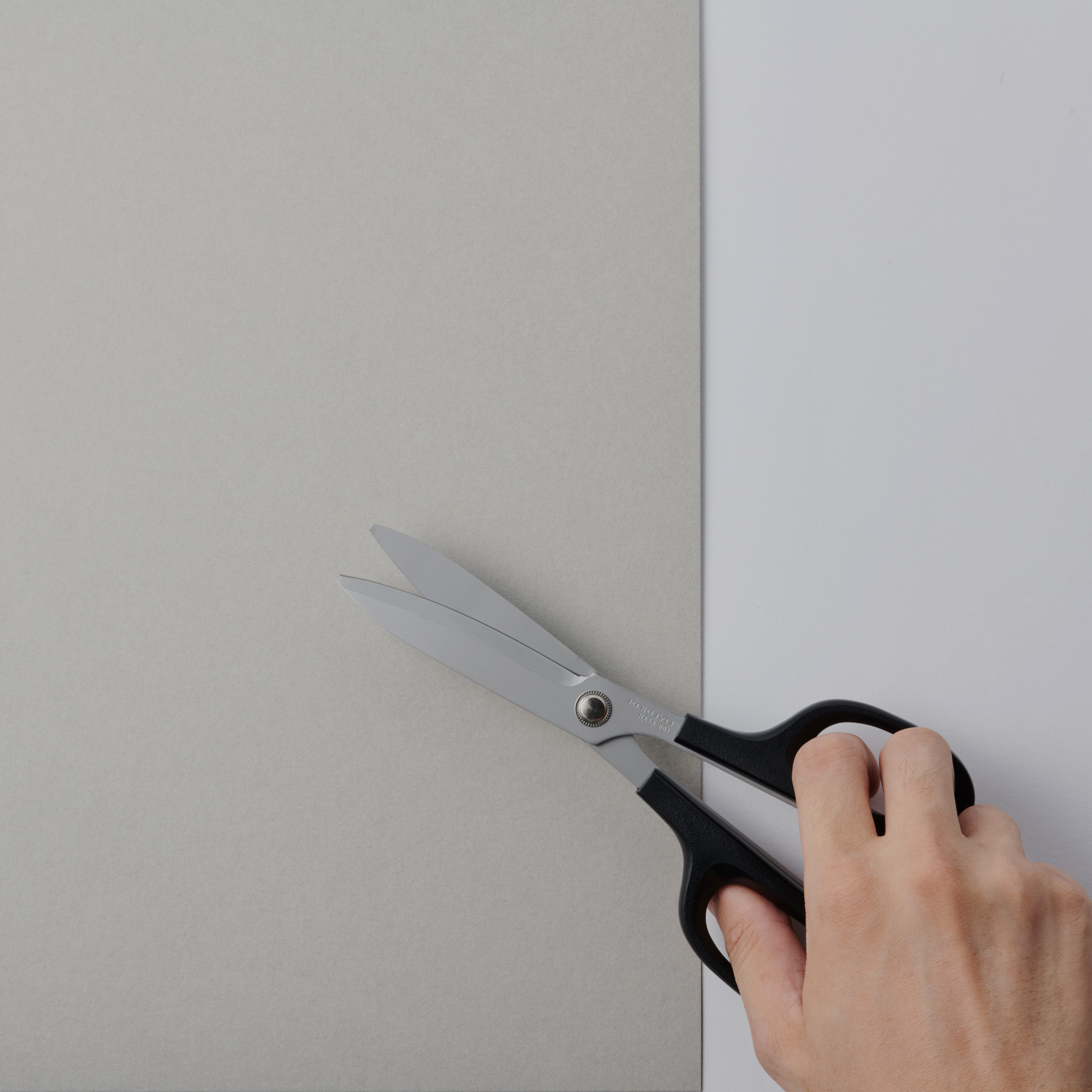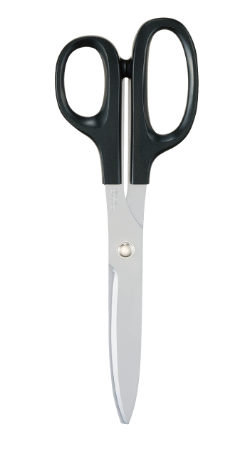 ■レーダーチャートの判定基準:①厚物の切断性能:刃先5mmの範囲でコートボール紙(350g/㎡)が切れる枚数。多いほど高得点。②薄物の切断性能:薄いフィルムを自重で吊下げた状態で刃の根元から刃先までで切断し、可否を点数化。③切断距離:一回の開閉で切断できる距離の長さ。刃渡りが長いほど高得点。④細かい作業性:刃渡りが短くて取り回しが良いかどうか。ストレート刃で細い先端のモノが高得点。⑤非粘着性能:ノリがべたつきにくい加工がされているものが高得点。⑥手の痛くなりにくさ:操作時に手が痛くなりにくいかどうか。形状が配慮されているものや、柔らかい素材を使用していると高得点。⑦開閉音の静音性:ハサミを開閉したときの音を測定。音の大きさを表すデシベル値が小さいほど高得点。⑧閉じ荷重のスムーズさ:ハサミの閉じ荷重の経時変化と負荷を測定。負荷が小さくて、かつ変化が小さいものが高得点。