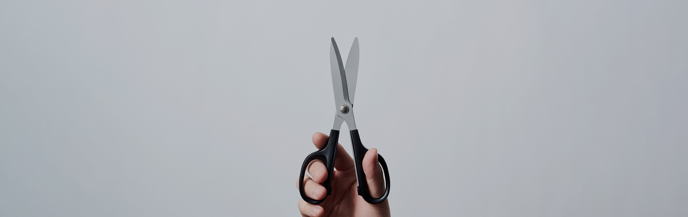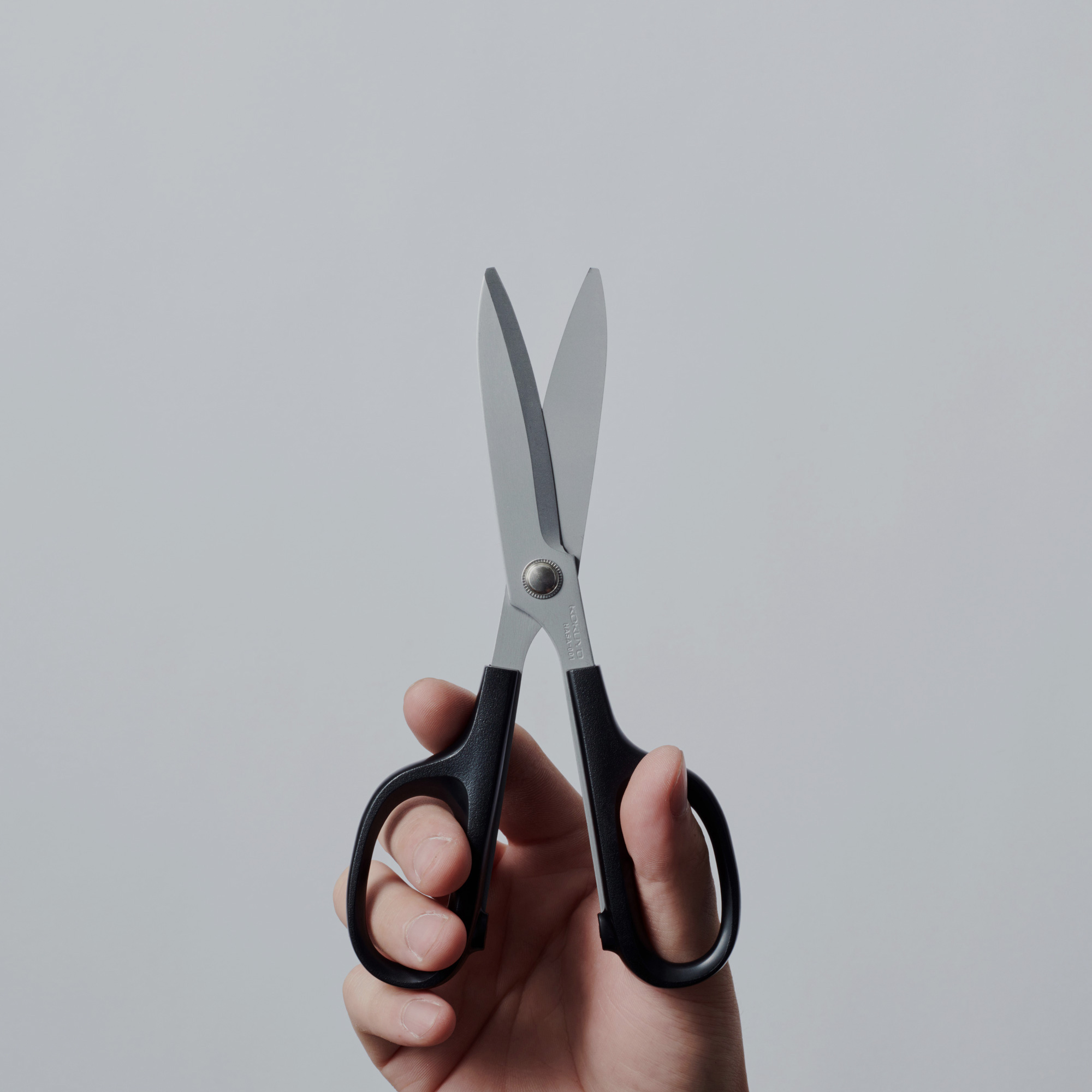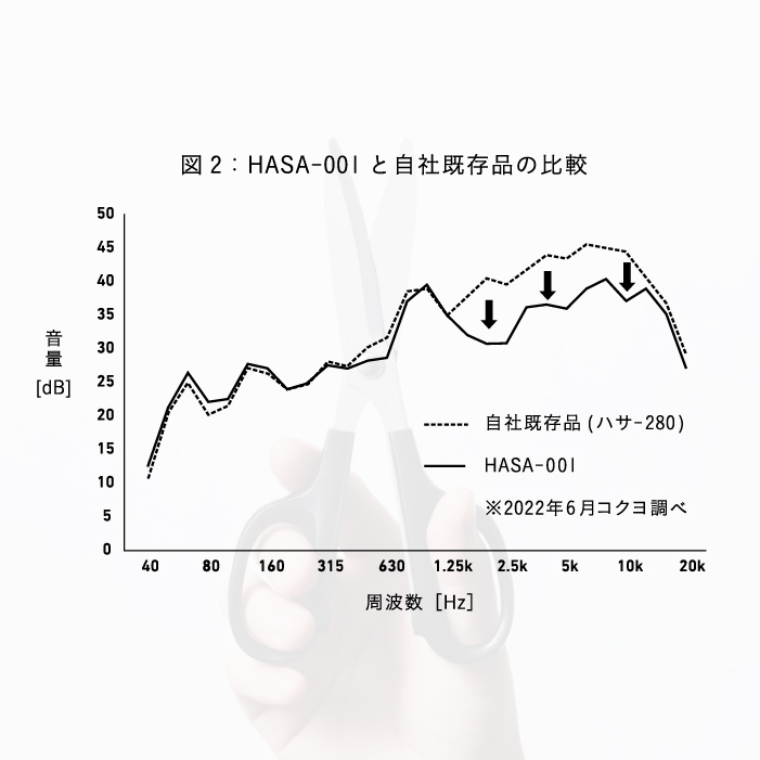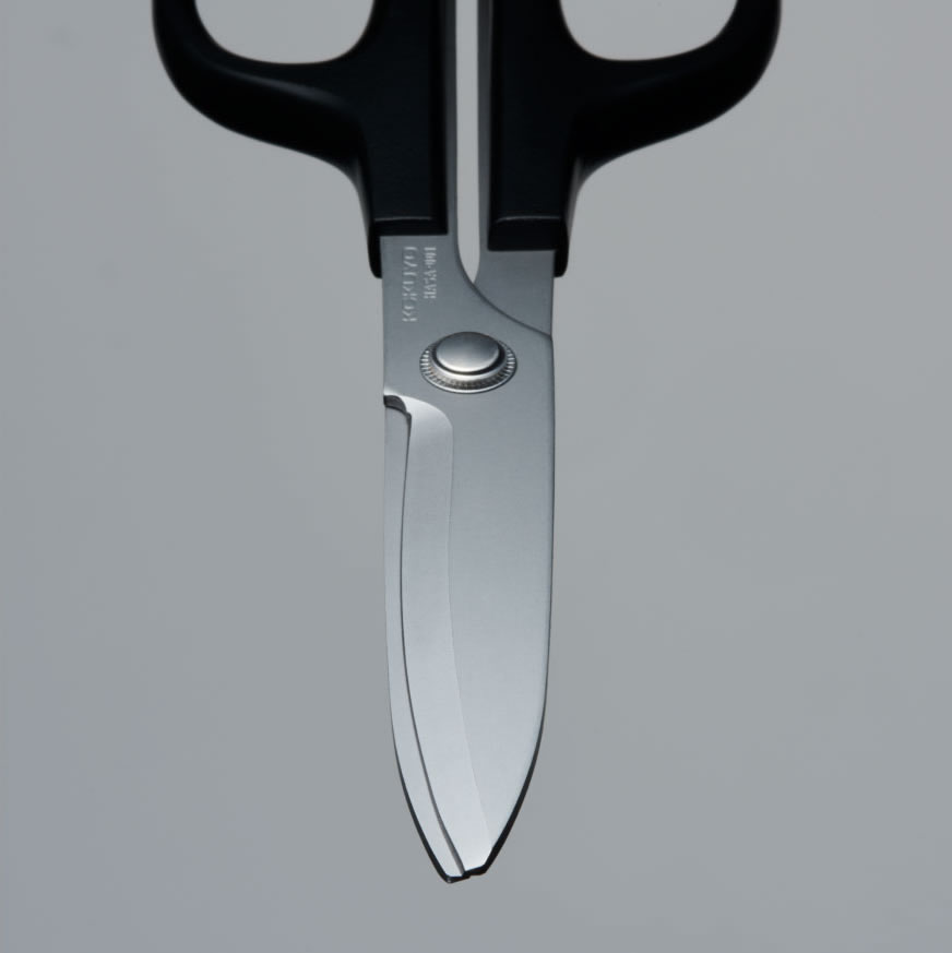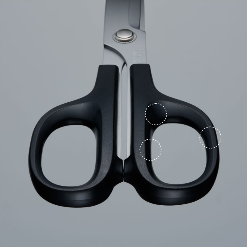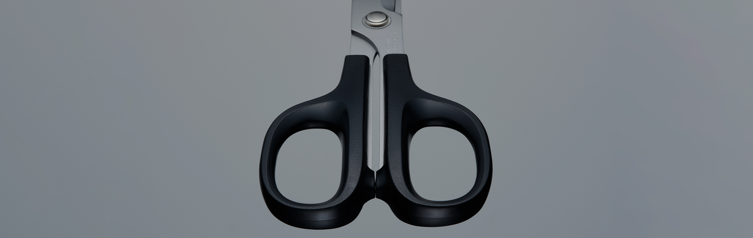 ■レーダーチャートの判定基準:①厚物の切断性能:刃先5mmの範囲でコートボール紙(350g/㎡)が切れる枚数。多いほど高得点。②薄物の切断性能:薄いフィルムを自重で吊下げた状態で刃の根元から刃先までで切断し、可否を点数化。③切断距離:一回の開閉で切断できる距離の長さ。刃渡りが長いほど高得点。④細かい作業性:刃渡りが短くて取り回しが良いかどうか。ストレート刃で細い先端のモノが高得点。⑤非粘着性能:ノリがべたつきにくい加工がされているものが高得点。⑥手の痛くなりにくさ:操作時に手が痛くなりにくいかどうか。形状が配慮されているものや、柔らかい素材を使用していると高得点。⑦開閉音の静音性:ハサミを開閉したときの音を測定。音の大きさを表すデシベル値が小さいほど高得点。⑧閉じ荷重のスムーズさ:ハサミの閉じ荷重の経時変化と負荷を測定。負荷が小さくて、かつ変化が小さいものが高得点。
