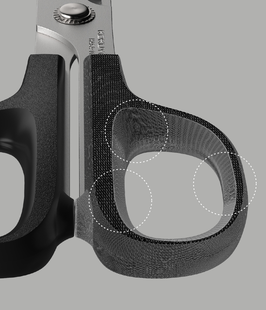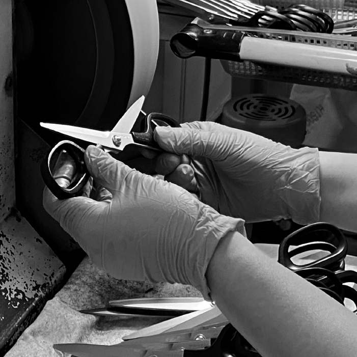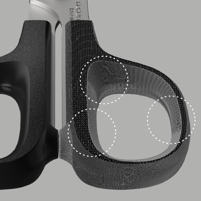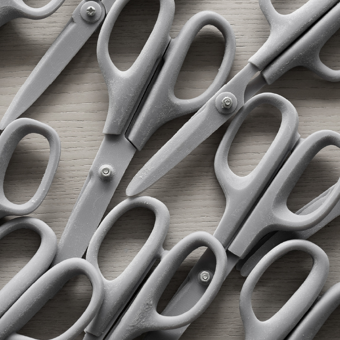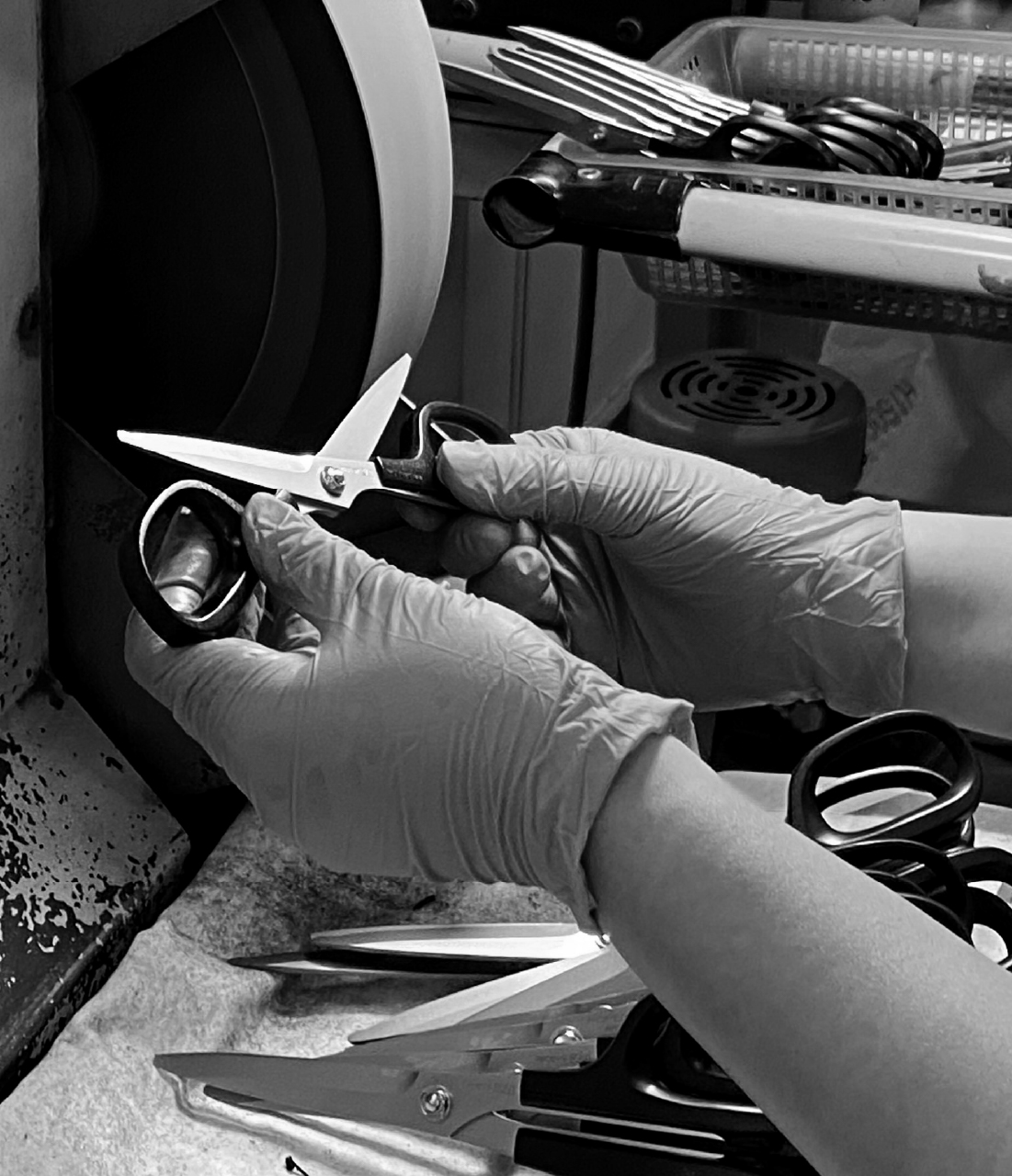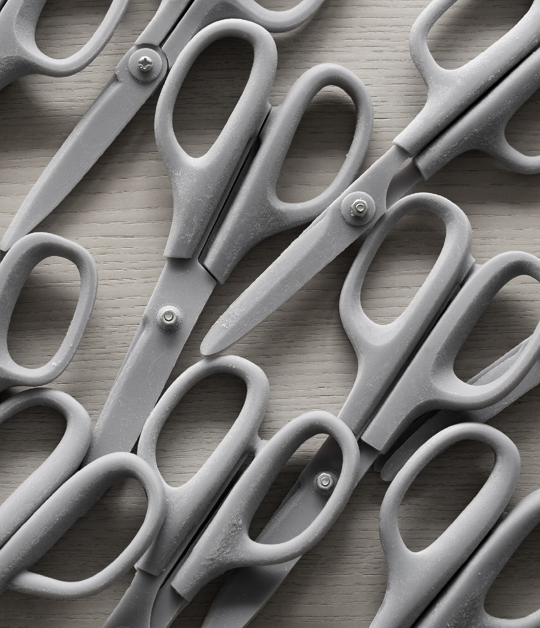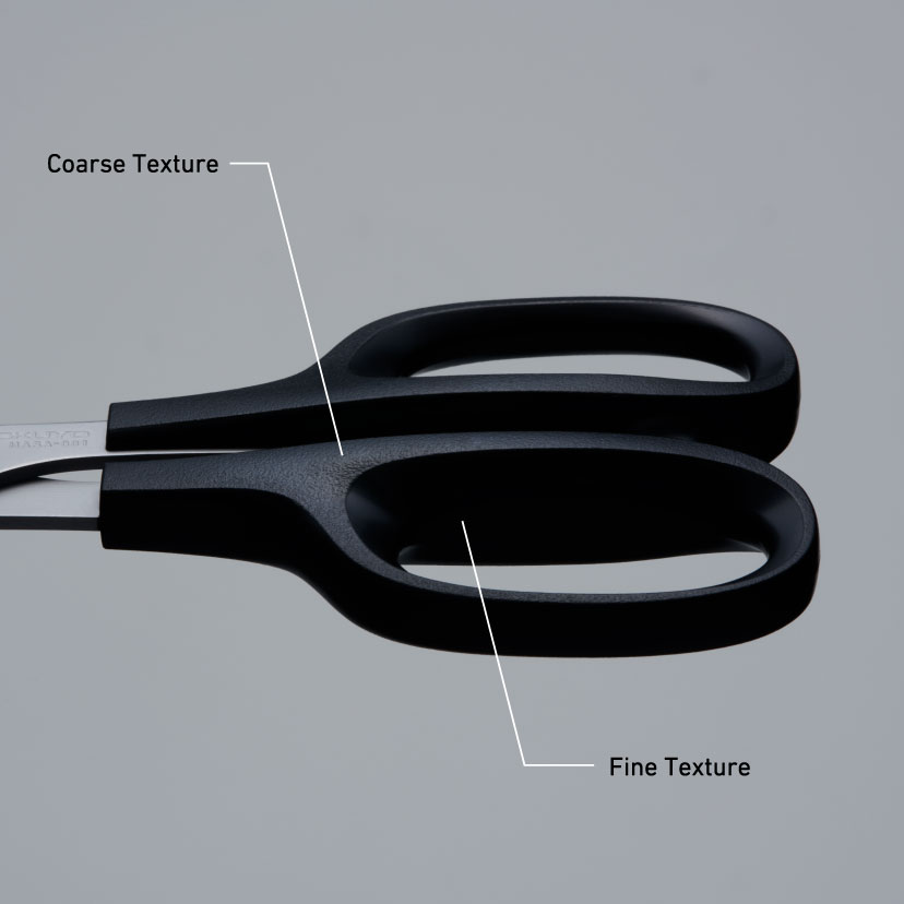 ■レーダーチャートの判定基準:①厚物の切断性能:刃先5mmの範囲でコートボール紙(350g/㎡)が切れる枚数。多いほど高得点。②薄物の切断性能:薄いフィルムを自重で吊下げた状態で刃の根元から刃先までで切断し、可否を点数化。③切断距離:一回の開閉で切断できる距離の長さ。刃渡りが長いほど高得点。④細かい作業性:刃渡りが短くて取り回しが良いかどうか。ストレート刃で細い先端のモノが高得点。⑤非粘着性能:ノリがべたつきにくい加工がされているものが高得点。⑥手の痛くなりにくさ:操作時に手が痛くなりにくいかどうか。形状が配慮されているものや、柔らかい素材を使用していると高得点。⑦開閉音の静音性:ハサミを開閉したときの音を測定。音の大きさを表すデシベル値が小さいほど高得点。⑧閉じ荷重のスムーズさ:ハサミの閉じ荷重の経時変化と負荷を測定。負荷が小さくて、かつ変化が小さいものが高得点。