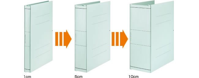 - 書類量に応じて背幅が変わるので、無駄なスペースがなく省スペースに役立ちます。
