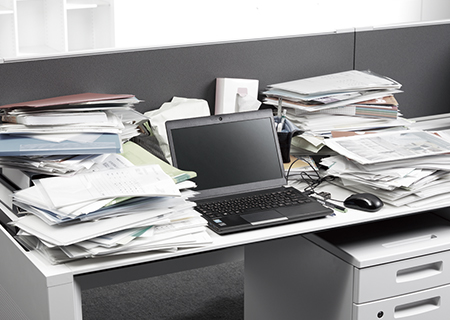 あなたのデスク、書類が山積みではありませんか?書類が発生したら、とりあえずクリヤーホルダー(クリアファイル・クリアホルダー)にさっと入れて、他の書類の上に置いてしまうという動作が、知らず知らずのうちに習慣化されてしまっている方も多いのではないでしょうか。1人あたりの書類を探す時間は、1日平均約20分。1年間に換算すると約80時間に相当します。書類が山積みでは、必要な書類が見つかりづらくなり、さらには作業スペースもなくなり、仕事を進めるうえで支障をきたします。