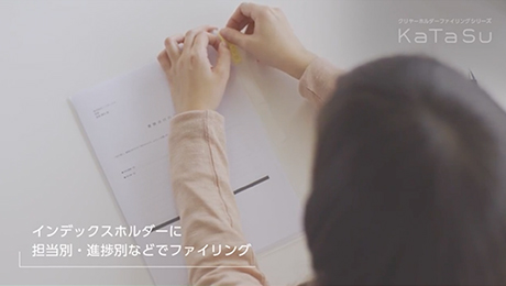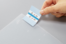 書類を整理するうえで人気なツールがクリヤーホルダー(クリアファイル・クリアホルダー)。年間約4.4億枚ものクリヤーホルダー(クリアファイル・クリアホルダー)が出荷されていると言われています。クリヤーホルダー(クリアファイル・クリアホルダー)の魅力は、パンチ穴をあける手間なくサッと書類を入れることができ、薄型で書類の小分けがしやすいなど、使い勝手の良さが好評の商品です。一方で、見出しを書きづらい製品特性から、書類の検索性を高める為に、見出しを書いたふせんをクリヤーホルダー(クリアファイル・クリアホルダー)の表面に貼って整理する場合があり、その際にはふせんが剥がれないようにテープで補強したり、クリヤーホルダー(クリアファイル・クリアホルダー)の内側に貼るなど、書類整理に手間がかかってしまいがちです。