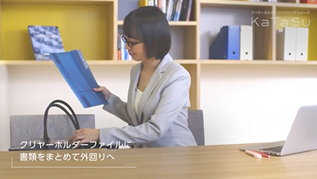 そのような中で活躍するのが、クリヤーホルダーファイリングKaTaSu<カタス>。①クリヤーホルダー(クリアファイル・クリアホルダー)に市販のふせんや専用ラベルで見出しを書き、②デスクの上で立てて保管すると必要な書類が見つけやすくなり、③不要な書類も見分けられて書類を捨てやすくなります。見出しを書く(Ka)、書類を立てる(Ta)、書類を捨てる(Su) KaTaSuの3つのアクションで、あなたの書類活用のワークスタイルを変えてみませんか?