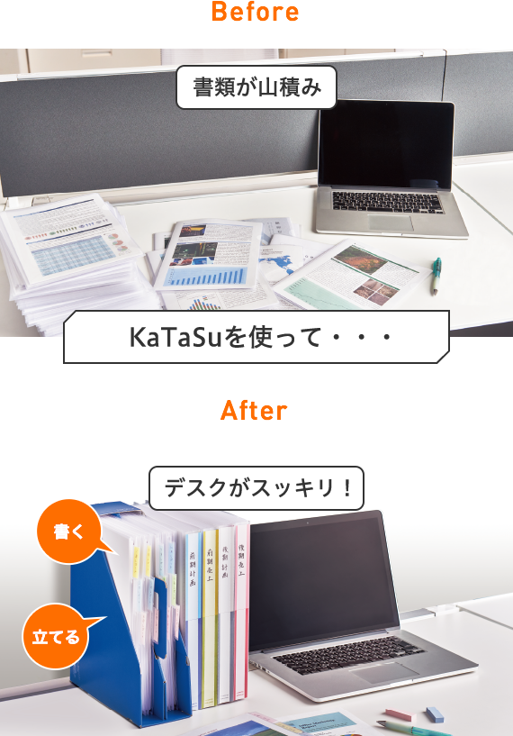 袋形状でA4書類以外の資料やモノも入れられ、デスクの上を簡単に整理できます。