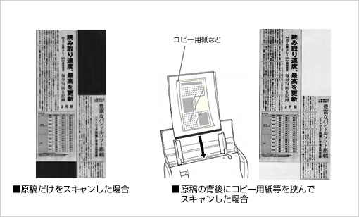 - 新聞の切り抜きなどをスキャンした場合に黒い部分がでてきます。解消する方法はありますか?