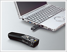 USBポートに受信器を差し込むだけで、すぐに使えるので、データさえあれば、会場のパソコンでプレゼンテーションができます。