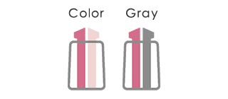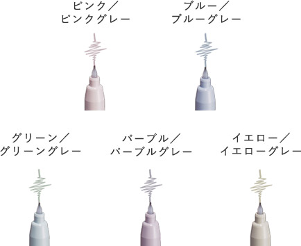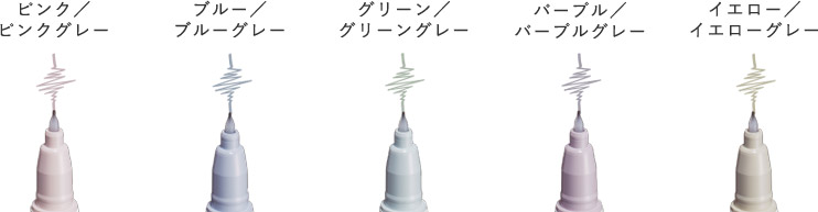 同系色の濃淡2色のカラータイプと グレー+カラーのグレータイプの 2タイプをラインアップ。どちらともマーキングをしてもチカチカしにくいインク色です。