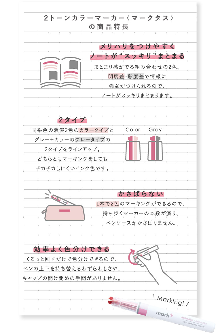 2トーンカラーマーカー〈マークタス〉の商品特長