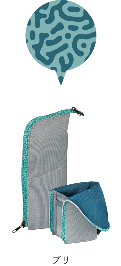 生物が作り出す規則性のあるランダム模様を数式によって再現した「チューリングパターン」をファスナーにあしらいました。