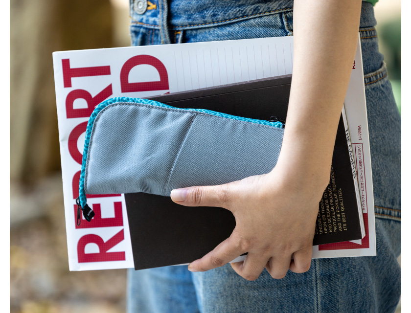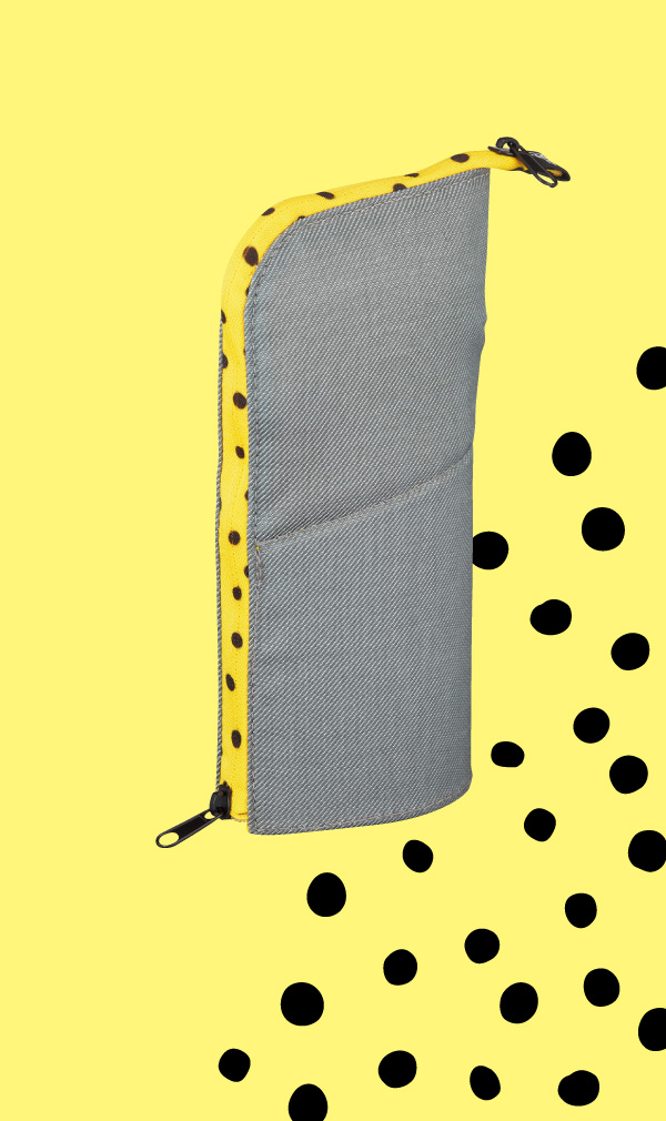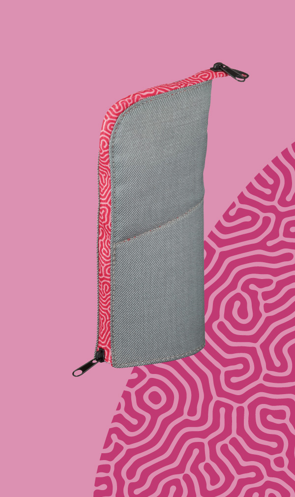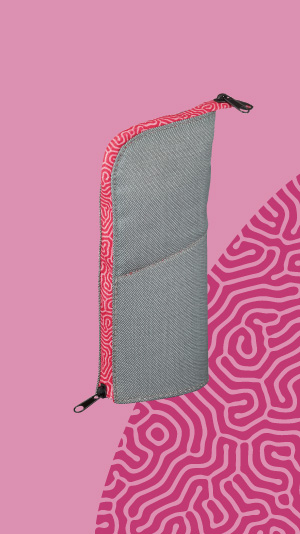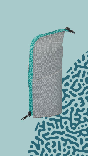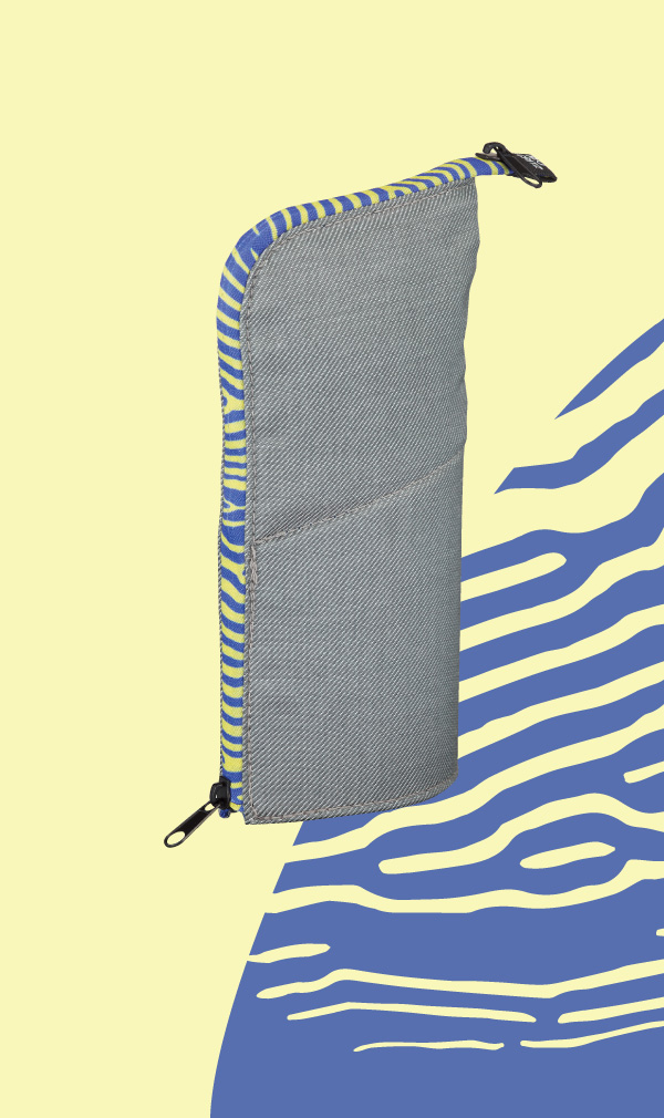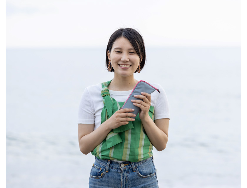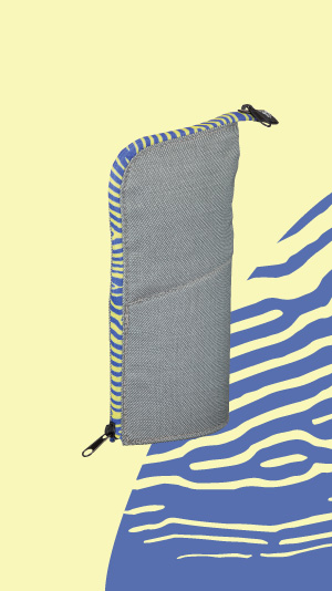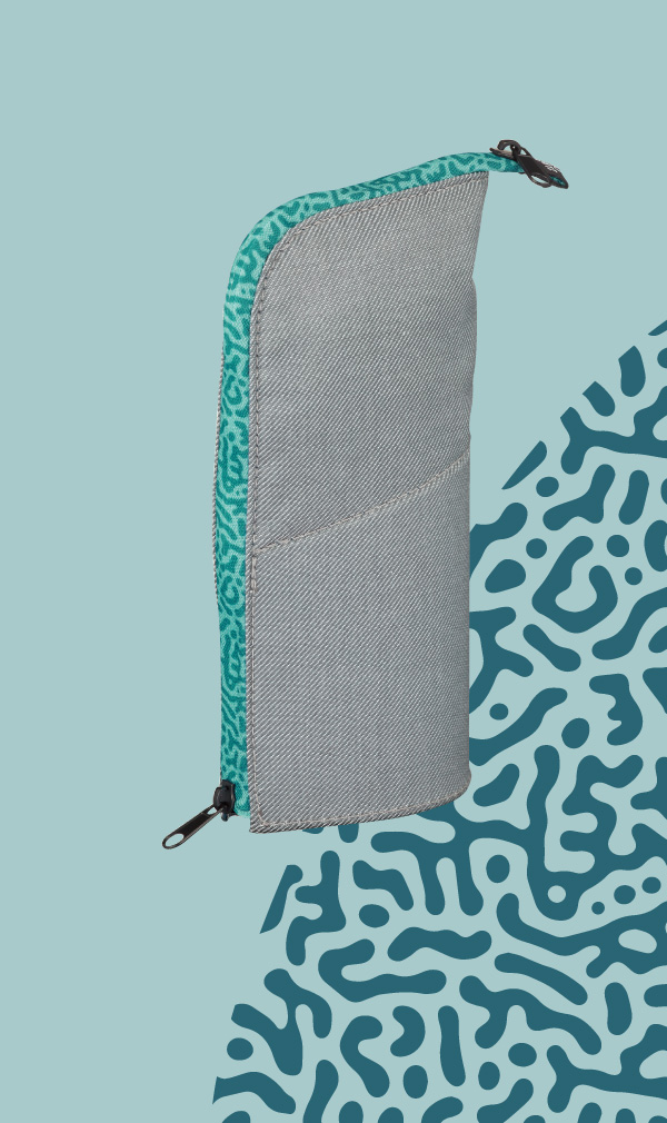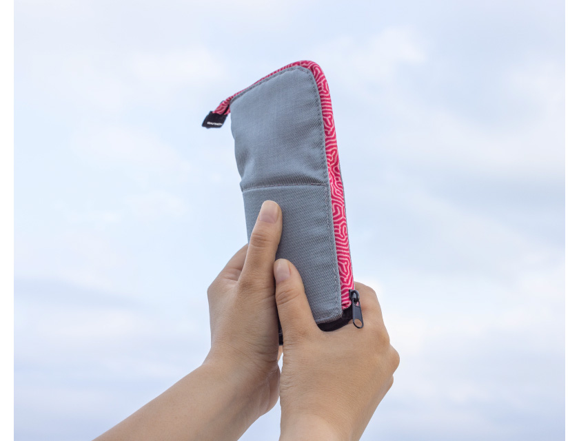 廃棄された漁網を紡ぎなおして楽しく使えるペンケースに仕立てました。