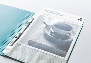 ※コクヨの2穴A4リフィル(クリヤーポケット)がご使用いただけます。 ※4穴・30穴ポケットや他社製品をご使用いただく場合は、ポケットが表紙からはみ出す場合がございます。 -